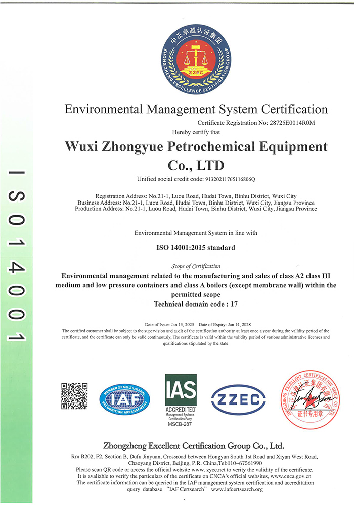 中岳石化下設四個控股子公司——無錫市中岳石化設備有限公司、無錫華凱環境工程有限公司、山西中岳實業有限公司、武漢中岳節能技術有限公司??偛课挥诮洕l達的長江三角洲,風景秀麗的太湖之濱——無錫市胡埭工業園區。是專業生產石油、化工、醫藥、染料、冶金、環保、焦化等行業用成套設備的專業公司。公司銀行資信等級4A級,公司注冊資金:3080萬,并獲得江蘇省高新技術企業、無錫換熱技術工程裝備中心證書,同時也是國內外主要工程公司設計院的合格供應商。